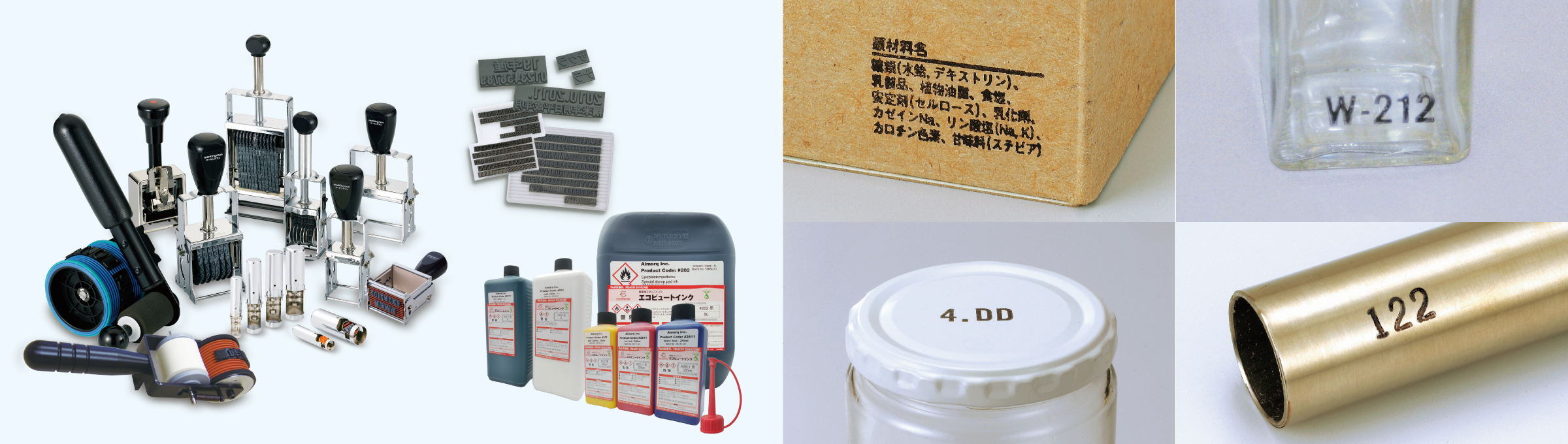産業用スタンプマーキング機器。ハンディスタンパーと速乾インクを組み合わせた様々なスタンプマーキングをご提案。ゴム印サイズは標準セットで最大25mm。その他特注ゴム印でマークやロゴを印字可能。
